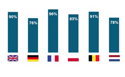 Gekrompen orderportefeuilles Sinds het vierde kwartaal van 2019 zijn de orderportefeuilles van de Europese installatiesector met gemiddeld 1,5 maand gekrompen. Installateurs in het Verenigd Koninkrijk (-2,8 maanden) en Frankrijk (-2,3 maanden) laten de grootste daling in hun orderboek zien. Een vergelijking tussen het eerste kwartaal van 2019 en dat van 2020 laat zien dat Europese installatiebedrijven gemiddeld 1,1 maanden minder aan orders boeken dan een jaar geleden. Nederlandse en Poolse bedrijven kunnen hun huidige personeel het langst laten werken - ongeveer 6 maanden. In Duitsland, Frankrijk en het Verenigd Koninkrijk liggen de orderboekingen tussen 3,4 en 3,6 maanden.