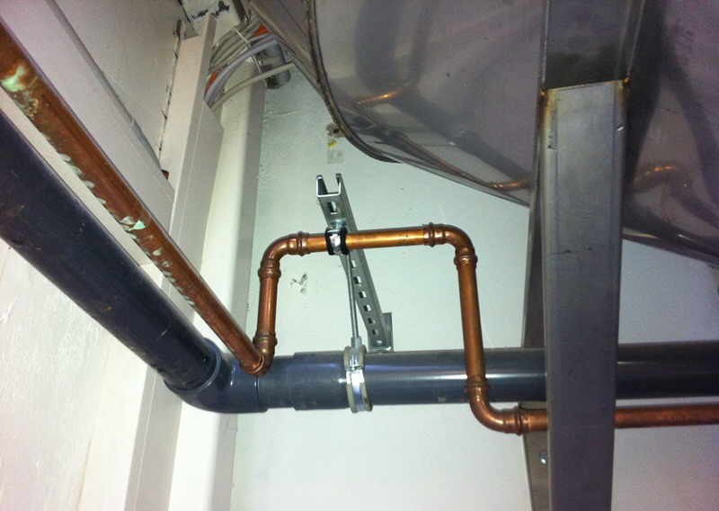 Met een wat minder goedgevulde bus (genoemde klant weigerde de factuur voor de vloerverwarming te betalen en eiste zelfs een vergoeding voor de geleden schade), ging de ietwat berooide Karel op pad naar een nieuwe klus. Zoveel had hij daarvoor ook niet nodig. Het ging om het aanleggen van een waterleiding en verleggen van een afvoer. Beide moesten via het plafond lopen, te monteren met ankers en draadeind.