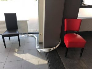 Uiteraard mocht dat geen probleem zijn, besloten Karel en Pjotr na snel telefonisch overleg. Die mooie vloer ging er natuurlijk niet uit. Karel bedacht een passende oplossing, zodat de bewoners er alsnog lekker warmpjes bij kunnen zitten.