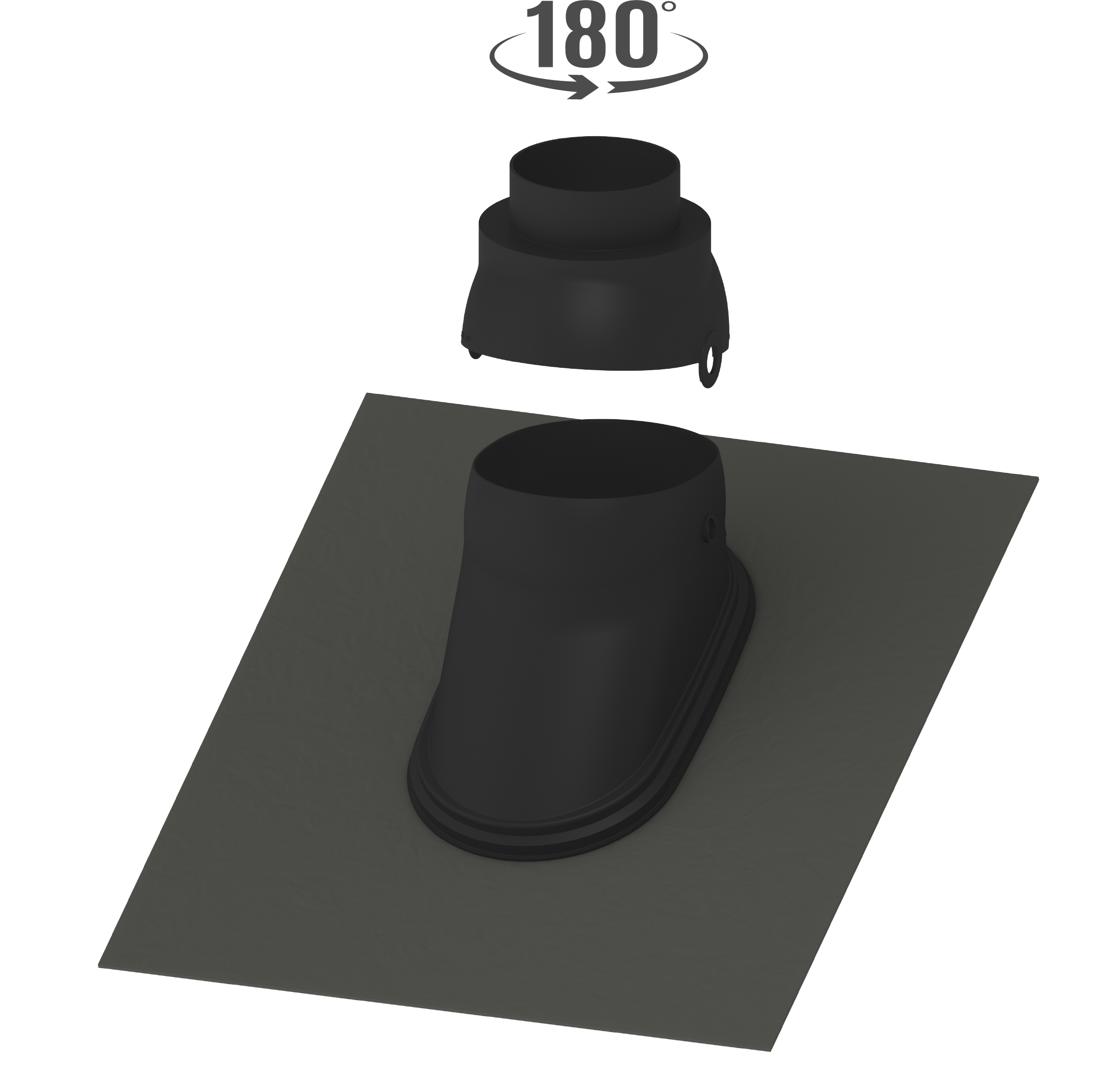 Universele Ubiflex Dakdoorvoerpan 15°-55° met knobbel/schaalfixatie met een vast scharnierpunt en een ruim bemeten plaat loodvervanger Ubiflex. Geschikt voor elke soort pan en ieder type dakdoorvoer. Geen voorraad van verschillende pannen meer, u heeft altijd de juiste!