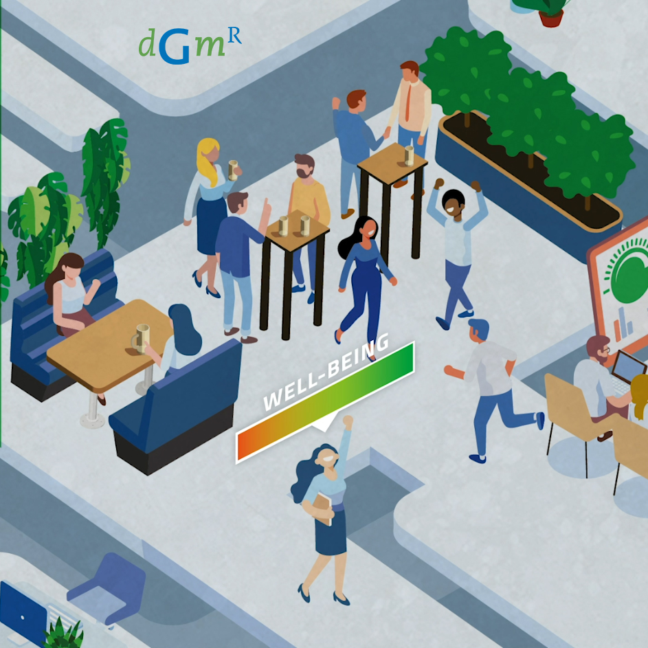 Steeds vaker kloppen opdrachtgevers bij DGMR aan om een gezonde werkomgeving voor gebruikers te creëren. Volgens het principe ‘practise what you preach’ is het eigen kantoor aangepast aan de WELL-eisen. Ook in de 1,5m-samenleving wil DGMR met beperkte rondleidingen in het kantoor in Den Haag aantonen dat het behalen van het hoogste WELL-certificaat ook haalbaar is in bestaande gebouwen. Daarnaast ontwikkelt DGMR een geanimeerde virtuele toer door het kantoor.